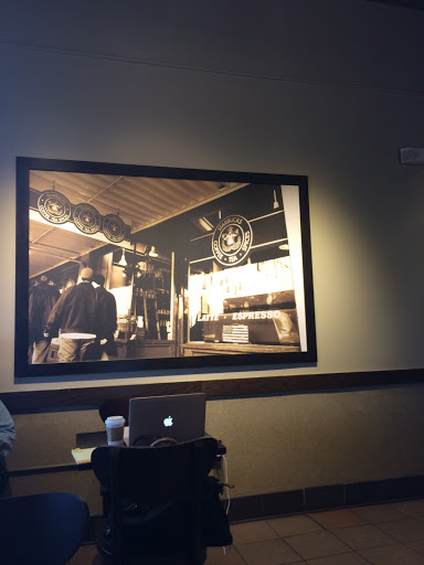 I use this Starbucks to study for a change of environment. Good atmosphere and the young college kids they employ are friendly. Ive been here multiple times and they deserve a good rating. Unfortunately it can get crowded at times but you cant blame a business for that (it just means their doing well).