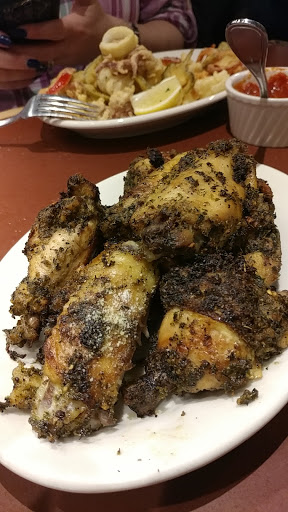 Everything very good and GREAT atmosphere! The appetizer wings were crisp and coated in herbs - very different and delicious. Focaccia bread served in basket fresh and warm, eggplant parmesan hot and tasty. The pizza crust is not the New York thin style but very good. The waiter was friendly and attentive and fun. On the left as you walk in is a separate room with a long sit down bar and smaller tables in the back - a little more intimate if you are looking for that. Overall a great place!