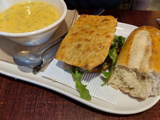 I love there soups and sandwiches they also have great seating they offer great prices and deals keep in mind the6 bake fresh bread everyday there known for breads in things okay