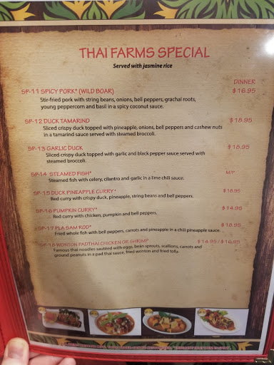 Wow! What an incredible meal and such wonderful service! Tonight was our first time at Thai Farms and we will definitely be returning time and time again. We have been looking for a great Thai restaurant for 2 years, and we finally found it :) we kept saying how we did not want the meal to end. I mean we even licked the bowl of the yellow curry clean- the Thai crepe appetizer with yellow curry is a must have!!! I highly suggest this restaurant to anyone who enjoys an authentic Thai meal! You will not be let down.