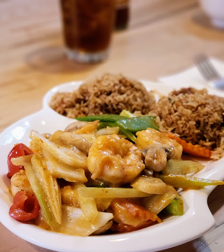 We went for lunch today.....the pork fried rice had about 3 tiny, tiny pieces of pork and about 3 pieces of bean sprouts. The red curry shrimp were the worst I have ever had.....nothing like this dish is supposed to taste....in fact, it was tasteless. The only thing good about the meal was the shrimp roll which they bought and fried. My wifes pad tai was measly, with very little chicken. We will NEVER return to this rip-off restaurant. And, wheres the hot tea and noodles usually served while you wait for your meal?