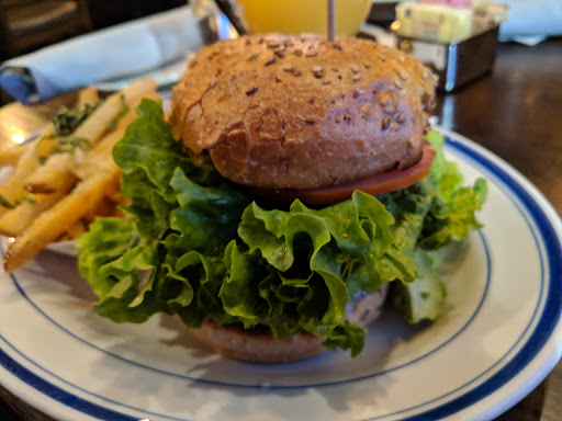 Burgers were very good. The service sucked. Food was dropped off waiter came by then but didnt see a waiter the whole time we were eating, not anywhere in the dining room. Both our sodas were empty and was never asked about a refill. Was finished eating, waiter was coming toward the table with a new soda, asked if we were finished and then put the soda in the waitress station, Asked about dessert and cleared table. I cant help wondering if the poor service had to do with it being a table with 2 women and us not drinking beers. Seen as not spending alot. I happen to tip very well when the service is good but I wont tip if the service is sub par. I dont think I will be back.