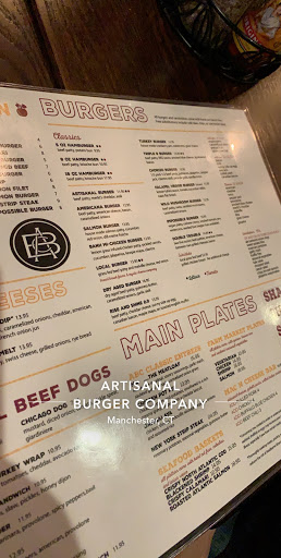 Went to Artisanal Burger on a Friday evening and ate at one of the tables in the bar with my wife. The atmosphere was great and both the hostess and our waitress were great and attentive. Had the Huge pretzel as an app, which is a meal in itself. Its well presented and I liked the 3 types of different sauces you receive. The beer selection was great. We ordered the Mushroom burger and this is why I only gave this place 3 stars. There is a lot of great burger places in the Hartford area and although this burger was alright, with a name like Artisanal burger I was expecting a much better burger. The burger meat seemed off and there was barely any mushrooms on the burger. There was a side of what we believe to be marinara sauce or something similar which seemed an odd combination and we didnt use. Might be back for another pretzel or a good beer but probably not for the burgers. Overall a great experience with the staff and I am thankful for their hard work, especially on a busy weekend night.