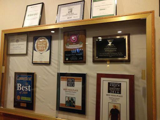 NOT NEW HAVEN! Please dont judge the real Pepes pizza off of this establishment. 2 out of 3 times Manchester has failed to live up to the name while I have ordered there. Way too thick, under cooked and uneven toppings. Now that thats out of the way it is still the best pizza in town. Management, please keep a closer eye on this restaurant because it is tainting your priceless name and embarrassing me when I bring people here.