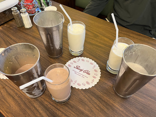 This is a nice 50 Style Diner that serves burgers, frankfurters,and a couple of Seafood items. Nothing fancy, but definitely wholesome. Their shakes are very good. They specialize in frying cheese on the grill so its like that cheese that oozes out of your grilled cheese and gets crispy, yum yum yum. I have ordered the whole belly clam platter which will be served with fries and coleslaw and a coffee milkshake. I have already received my coffee milkshake and it is delicious. If you are looking for fast food go elsewhere this is a made to order diner so you need a little bit of time.