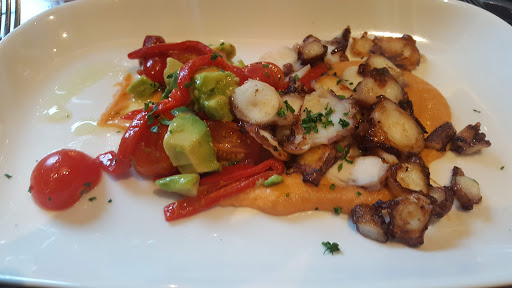 nice place, food is ok. I ordered crispy calamari and caprese as apetizers, was good. After salmon for my wife and pizza broccoli rabe and sausage for me. The salmon was ok, but i dont liked the pizza, too much garlic,withouth borders, after 2 slices was disgusting. I hope they will improve with pizza. Service was ok.