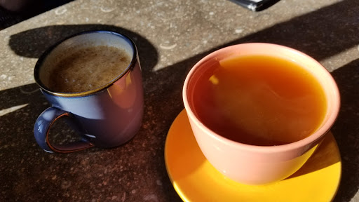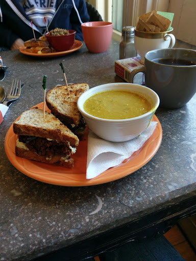 My friend and I sat by the window in the warm sun. The coffee was bold and hot, better than any chain coffee places. We ate the special, a grilled cheese sandwich with a cup of bean soup. Really, to die for. We enjoyed the atmosphere, the food, and the staff. Id return for sure.