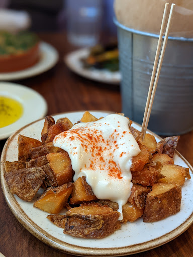 great vibe — both for a bar & for dinner. waitstaff are usually on top of their game: they are incredibly knowledgeable about wine. there are some really stand out dishes here, including the chicken pimientos and the charcuterie boards (my favorites are the valdeon, salchichon, cana de oveja). i would steer clear of the seafood paella — it lacks seasoning and is flavored solely by tomatoes and overcooked seafood. not worth the price.