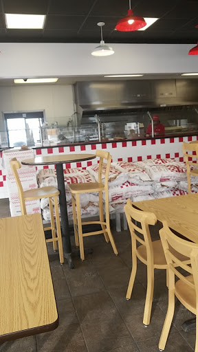 If you have been to Five Guys before, you know what to expect, a fresh cooked burger and tons of delicous fries. This one though has an outside set of tables that allow you to eat outside if you would like, and the inside configuration is slightly odd. You order at the back of the store, but walk into the area where people are awaiting pickup. Staff seems friendly and moves the process along well.