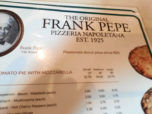 After having just finished a bodybuilding competition in New Haven CT, I was desperately craving a large pizza as I had been dieting for over 10 weeks, strict number of calories, carbs, water intake, etc. I asked around backstage at the competition for the best pizza around and there was a resounding answer, Frank Pepe Pizzeria Napoletana in New Haven CT, hands down all CT residents said. I exited the competition at 9:45PM and called them to place an order as I knew they closed at 10PM, I was about 10 minutes away and the woman on the phone said "if you can get here, well have it ready for you, otherwise we close the doors at 10PM sharp." I said "oh, Ill be there on time, Ive waited 10 weeks to treat myself after a competition, ill be there." I made it to the restaurant and picked up my large pepperoni pizza just for me (I felt like Kevin Mccallister from Home Alone 2, lol) and figured that Id eat a slice before I got back in my car for the long trek home to MA (a 2.5 hour drive) and I was instantly hooked on the best pizza I have literally ever had, and it wasnt just because I hadnt had pizza for over 10 weeks. The pizza was not greasy, was full of flavor, huge slices that didnt fall apart when you picked them up, the perfect ratios of cheese, sauce, dough, and toppings, and the crust was to die for as well, the toughest part of the pizza to get right. I ate 5 pieces before I knew it and I hadnt even stepped foot in my car yet, I was so impressed by the taste that I lost all track of time and was enjoying my delicious pizza. I believe they have other locations on the east coast but you have to try the original as it was literally the best pizza Ive ever had, I guarantee you will be blown away by the flavor, the authentic italian pizzeria feel, and the friendly service/staff waiting on you as you enter the restaurant. The restaurant is in a really nice area of New Haven, Little Italy, its like you walked through a timewarp and went back in time in Italy, very authentic. Try Frank Pepe Pizzeria Napoletana in New Haven CT and you will be a customer for life!