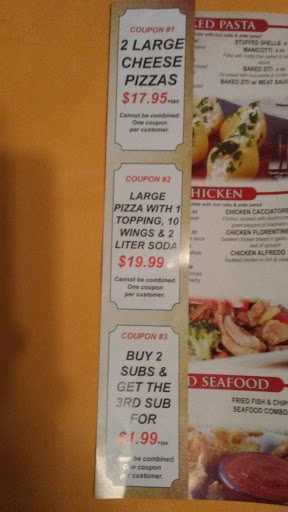 Great restaurant, they listen to your order, I once ordered a pizza and a 2 liter soda the man forgot the soda and went to stop and shop and bought me two of the soda because they were on sale so I have him a tip but he was so generous. I am about to order in 15 minutes also so it will be convenient if I get the same man and the food is always fresh and hot.