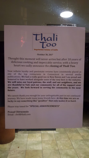 Thali too is perfect for people who love Indian food in an authentic way with a touch of modernness. The dosas, the parathas, the curries, the chats.. oh I can keep going on and on. its appropriately priced and the weekend brunch is easily one of the best deals in the entire city of new haven. their large mojitos, oh u gotta have a good tolerance to last thru that one. Dont forget to try their deans dosa.. u will be amazed. and the ambience and staff is awesome!! best Indian food in new haven If not America !