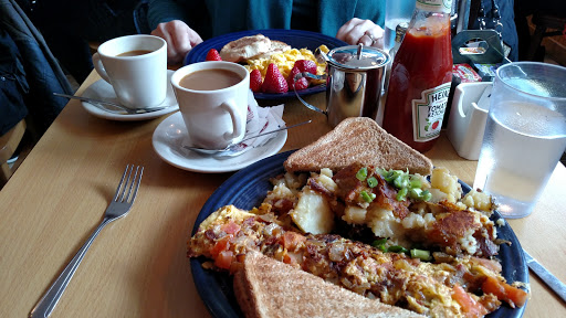 I found a long HAIR twice in my food and the coffee is not good at all! I doubt its just coincedence that it was aweful everytime Ive been there. Nothing special about the food here, its ordinary breakfast you can get at diners. Ive been here a few times because its my bestfriends favorite breakfast spot. The staff is very "standoffish" except for this one young hispanic looking man Ive seen seating customers a few times, he seems to be the only one that is able to smile or be polite. I complained once about the hair in my food and not only did they still charge me for it, they were so rude to me as though it was my fault! I dont know if he was just the cook or the owner, but he was so unprofessional & yelled at my waitress, she wasnt very pleasant to begin with but hes the cook, how is it her fault?! The hair wasnt even her color! Anyway, I believe in second chances which is why I didnt write them off immediately but this is too much. Yeah, I wont be going back there! I advise those reading the same, sorry but true.