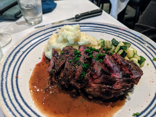 The duck spring roll appetizer had an odd combination of flavors and was not particularly pleasing to eat. My meal, however, was fantastic. Hangar steak that melted in my mouth, crispy sweet potato fries with a caper aioli and perfectly cooked broccoli rabe. All of the flavors complimented each other. The waiter was uninspired and looked bored, and the place was quite empty for a Friday evening. Overall, I feel like the meals are hit or miss, and since they are a bit pricey, its up to you if you want to take the chance.