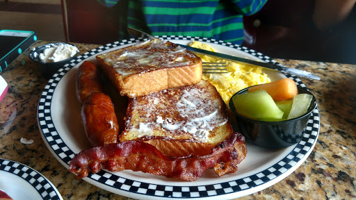 Besides being bright and shiny Id have to say the average diner here. I had a unremarkable Ruben with good fries. My wife had a western omelet that she described as ok. My wifes milkshake was not blended well, kind of thin until she found big chunk of un-mixed ice cream in the bottom of the mixing container. Service again was ok and would have been good if I didnt have to go wandering around looking for my check. Bottom line, Id go there again if it was the only thing open but will try something else if possible.