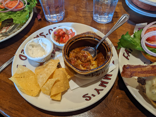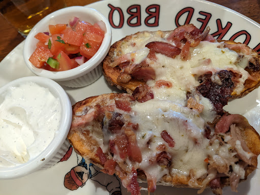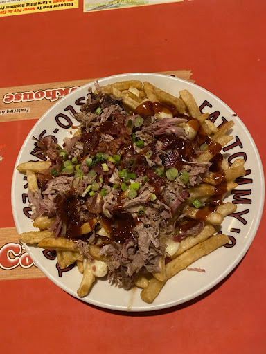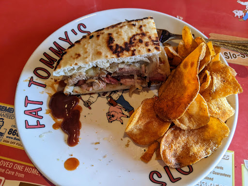 Ive been a fan and a regular customer despite the distance, just a bit too far to come here more than occasionally. Over the 15+ years Ive been coming here, Ive experienced very consistent quality across the menu and almost invariably good service. I am a particular fan of the "heart attack on a plate" nachos, which they actually seem to care about doing right -- many places with nachos on the menu skimp on ingredients and theyre disappointing especially when theyre ordered as an entree. But every time I have the nachos here, theyre world class. I like the fact that they have salads with a BBQ theme, so the healthier-minded in my party were able to find something they enjoyed. The ribs and pulled pork are consistently great as well. My other favorite is the "Fat Tommys Flatboy," a jerked chicken & pork sandwich on grilled flatbread with cheese, onions, etc. Desserts are usually pretty good though can vary in quality/quantity at times.