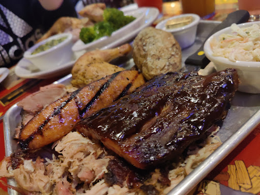 This is great bbq in a family friendly restaurant that never seems to be without a crowd. The pulled pork and chicken are delicious but my favorite thing is the burnt ends of BBQ smoked beef. The smokiness and the spiciness are perfectly balanced in the sauce and I love their cool creamy cole slaw as well. Sweet potato fries - also very yummy. Service can be a bit scattered in their attentiveness but always friendly.