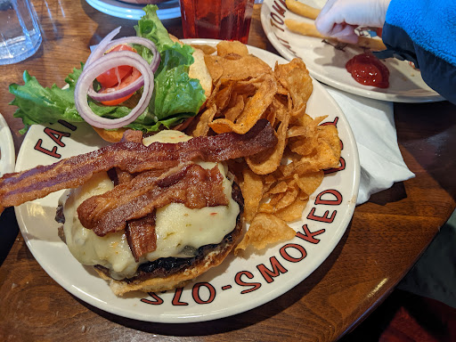 Not what it used to be. Would make the trip to New Milford just for the pulled pork nachos, those no longer exist. The pulled pork sandwich was dry and tough, covered in a very sweet sauce. About 10 years ago this was a treat to go to, now I will not be back. At least the waitress was nice which is why they get two stars.