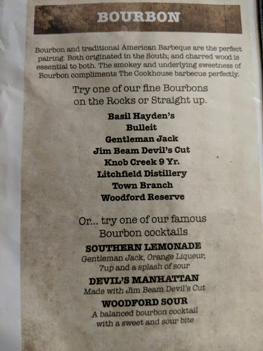 WHAT HAPPENED TO THE CRABMEAT AND CORN CHOWDER AND THE HORSERADISH MASHED??? Myself along w/ many friends used to look forward to these two staples the Cookhouse offered. They went and changed their menu to offer things I would get at crap places like Red Lobster or some other chain. French Onion soup and Cheesy Mashed Potatos. The portions have always BEEN quite inadequate considering the price youre paying. The ribs are kind of dry and hard and the food always ends up coming out at once! (soup/salad, appetizer, dinner) Ugh!!! The ONLY thing this place has going for them is the atmosphere (old barn) If youve ever had REAL southern BBQ this place pales in comparison. People who think this is good BBQ do NOT know BBQ/food!