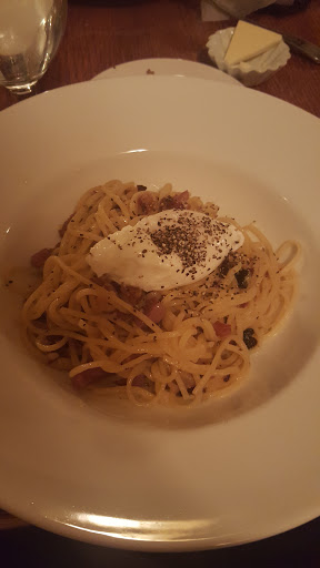 Excellent carbonara. Awesome outdoor and indoor dining!