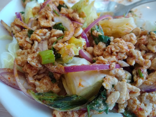 One of the dishes we ordered came with significantly different ingredients than were listed on the menu. We pointed this out the the waitress, who seemed surprised at the notion that including mushrooms in a dish not advertised as containing mushrooms could literally kill customers; she said she would discuss this with the manager. (We dont actually have those allergies, so we ate it anyway.) The food was quite tasty. We go to a lot of That restaurants, so we had some idea what to expect when we ordered "between medium and hot". It was hotter than we expected! So be aware that the heat calibration is on the high side.