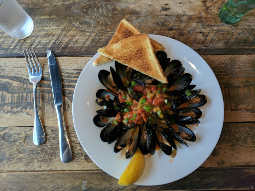 Great southern food. Laurens suggestions were perfect. I had the Tues/Wed special of all you can eat muscles. They were delicious with the andouille sausage in the broth. I also tasted the wings, ribs, collard greens and the peach cobbler for dessert. The happy hour is a great deal for both drinks and menu items. The wait staff and bartender were friendly and professional. It is rare now a days to see people take pride in their work. Ill be a regular here. There is also an upstairs bar with music on certain nights. Upstairs also has a dance floor, couches, dartboard and an outside deck with seating.