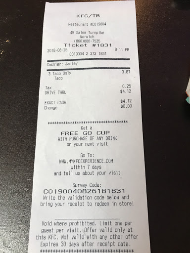 Ive tried this tacobell several times. And every time I always say Im going to give them another chance. But today I am DONE. I get the same order every time we go there. I get two cheesy gordita crunches with nacho cheese, and a bean burrito. Out of the 5 times weve gone there the gorditas are nearly empty every time. Like they literally put half the ingredients they are supposed to. I want to add that I worked at tacobell when I was 16, so Im fully aware that every item is supposed to meet a certain weight. Secondly, the flat bread is always dry and the taco shells are always stale. Today the nacho cheese side cups I ordered had CHUNKS in them and dried cheese which only happens when the employees are not cleaning the containers out and changing them within the time they are supposed to be changed. Im so disgusted I cant even finish my meal. Ill also be posting this review on ever site that I can. Thanks for nothing Norwich-Salem tacobell.