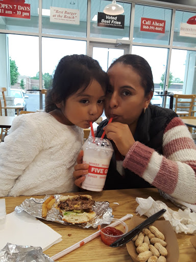 Ive only had good experiences here. The people that work at this location seem like they work well together and efficiently over all. Even if there is a line, they move through it quickly but with that said, I do normally just call in, order, and take it home. As far as five guys goes the atmosphere is pretty much the same. The quality is consistent as well so its easy to become a regular.