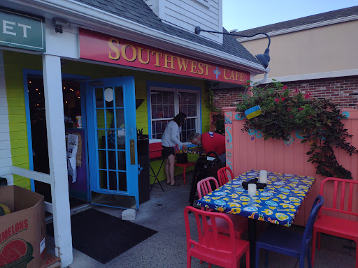 if you need a break from staid new england, spice up your day a bit at southwest cafe. like a vacation in santa fe--or at least a dinner in manhattans lower east side. an immersive experience, from the authentic art on the walls to the authentic food on the plate. gourmet-level cuisine at a moderate price. interesting, charming decor. pleasant, varied lighting. friendly, attentive service.