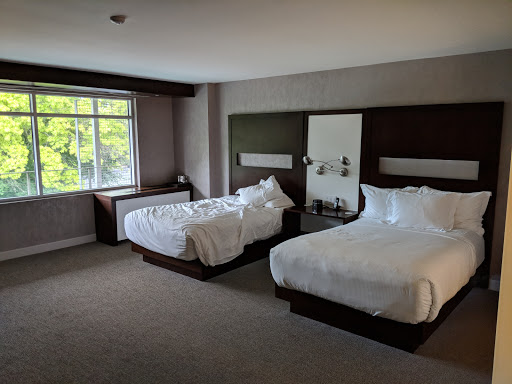 The hotel was very nice. There were lots of cool amenities like a T.V.built into the mirror in the bathroom and the whole room is controlled with an iPad. The only issue was with check-in. We were there for a wedding and there was a shuttle bus leaving the hotel at 3. We arrived at 12:30 to leave us plenty of time, but they told is our room would not be ready until 2:30. They knew what time the buses were leaving and should have been more prepared for the guests arriving.
