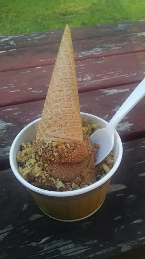 Delicious fresh-tasting ice cream made on the premises with a big array of flavors. I had the Peanut Butter flavored ice cream with Reeses Pieces and some Butter Pecan, both were very tasty. Helped my niece finish off the big mound of Mint Chocolate Chip from her cone as well. Well worth the stop if you are in the area. They have to-go pints as well.