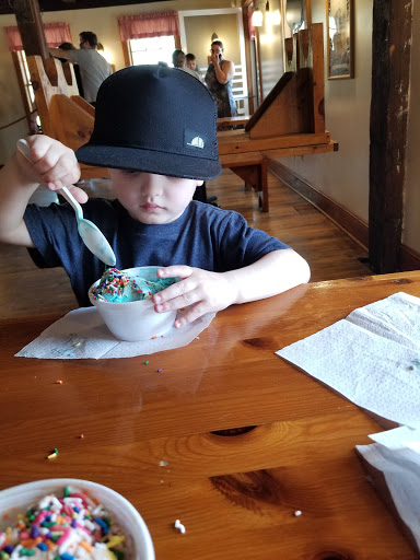 Cozy ice cream parlor located in what was once an 18th century tavern. Beutiful exposed beams. Best place to go if the lines are too long at Rich Farm. Cash only!