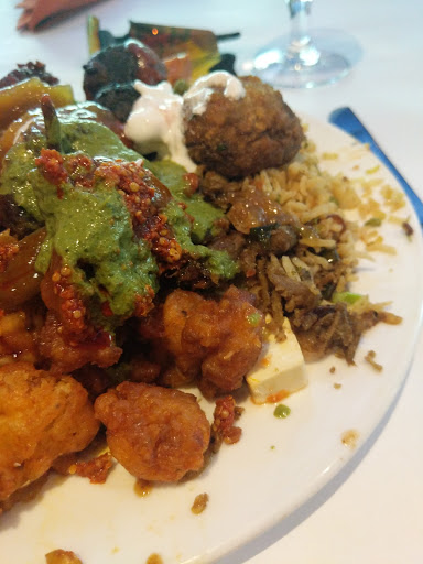 Excellent mixed vegetable fritters appetizer. Entrees all very good. I had jumbo shrimp in a yoghurt sauce with coriander. No room for dessert. Attentive service. Pleasant atmosphere. Not too noisy. A bit difficult to get to when driving east on the Post Road, but Google Maps guided us there.