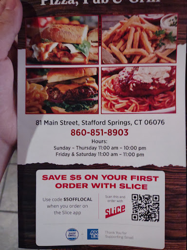Fun little restaurant and pub, they have good food and a unique building in the middle of Stafford Springs.