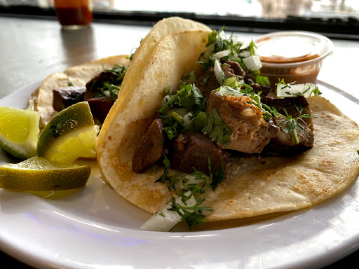 Pork taco, steak taco are good! Severed as what i know as a "street taco". My togo tacos had 3 torts on each, saves it from getting soggy and ripping...brilliant! The spicy sauce is beyond hot to me, almost too much, i will try mild next time. Friendly staff and easy access off East Main. I had 3 tacos and am pretty full, the big eater will need 4. Good prices and delicious food, just what the East side needed.