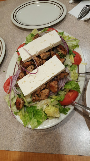 This is a great place to bring the kids. The greek food is good, the italian food is good. The pizza is a deep dish pizza which is fairly unique in the area and its quite good. We always get the salad with feta cheese and I recommend it. The small is very large and comfortably feeds 4 of us. The large is huge and can feed even more. I also love the chicken kabobs but they take a long time, and you should split them with someone, its a lot of food.