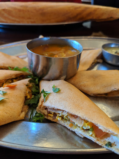 I was craving some authentic South Indian food so decided to try this place. This place was walking distance from my hotel. The place is not huge and has few sit down tables. When I walked in there was a small group on one table so they were not very busy. After looking at the menu for 10mins and waiting for somebody to stop by at my table I had to wave my hand to get attention so that I can place my order. Not a good sign when the restaurant is not even busy. I ordered the Gobi Manchurian (cauliflower made Indian Chinese type) and also had the Masala Andhra dosa. Gobi Manchurian was just average and wasnt made the it should be. My dosa wasnt spicy at all though it had good flavors. For dessert I ordered gajar ka halwa(carrot desert) but they forgot about my dessert order and after waiting for 15 mins I decided to pay my cheque and leave. It was then the guy behind the cash counter realized that they goofed up and did apologize. Overall my experience here wasnt that good.