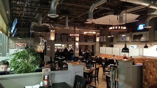 Busy Saturday night. After waiting 15 minutes, the hostess nearly gave our table away. Definitely not a good start. Terrible table waiting system - no pagers. In addition, we had one place setting for a table of 3. Really? Burgers were decently sized, but service was lukewarm at best. Not a great location, okay food and poor service.
