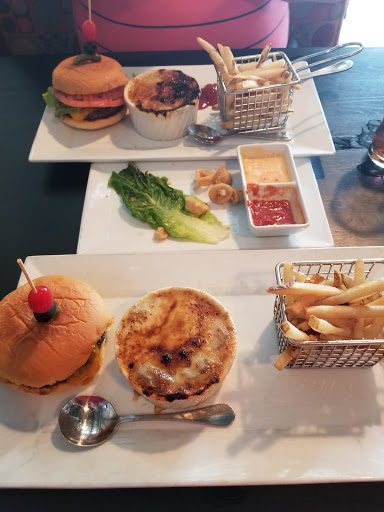 The Food was so Delicious. I really enjoyed it. Service was good. The Salmon should have been portioned thicker and was slightly overcooked. I like it medium. It is tasty with the sauce and capers.I love the chicken spring rolls with the sauces. Yummy! Sweet potato fries are very good! Truffle fries is, also very good. Burgers are great too.