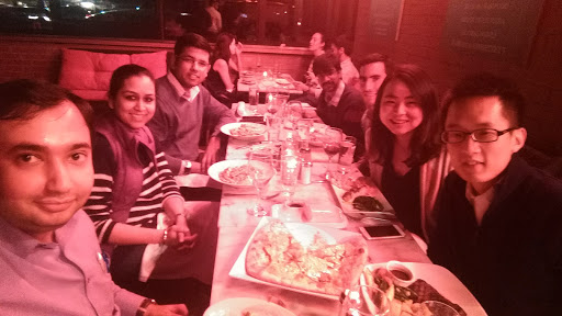 Very nice atmosphere. Great decor. The space is lit by low-lit red chandeliers and candles. The atmosphere was nice, but noisy. Food came out relatively quickly, but wasnt hot. The staff was not the most welcoming. The food was creative. The brussels sprouts were done really well and the bolognese was very good. The goat cheese cakes were not very exciting unfortunately. I would definitely go back and try some of the other items on the menu.