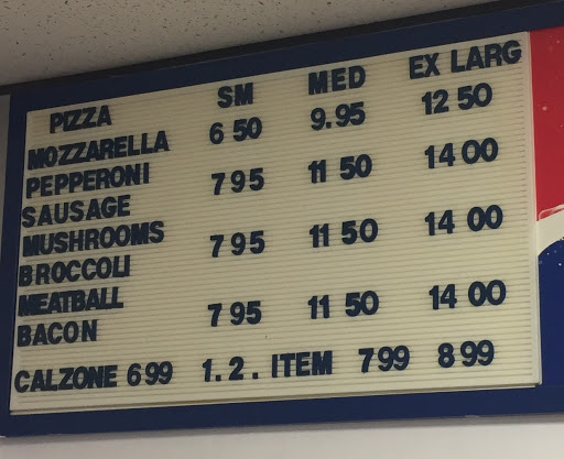 Best pizza that I have encountered. Well worth a stop. Its been around at least 30 years. It is so good, and the crust is just as good as the pizza. You can sit down and eat there too. Good prices. I bring people from out of town there and have not had a un-satisfied person yet!