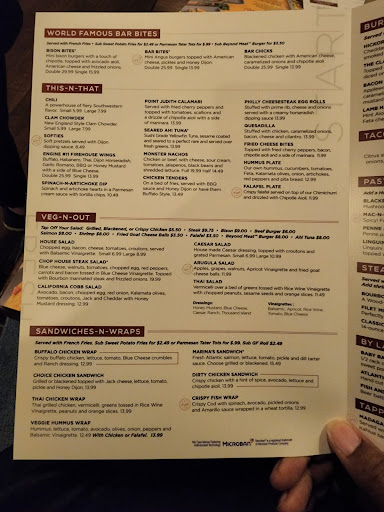 The food has always been good anytime Ive gone and no problems with the service either. Nothing stands out though. Parking at this location absolutely blows. 99 is nearby and better in every category, but I sometimes still go to wood & tap since the food is good and the variety is different.