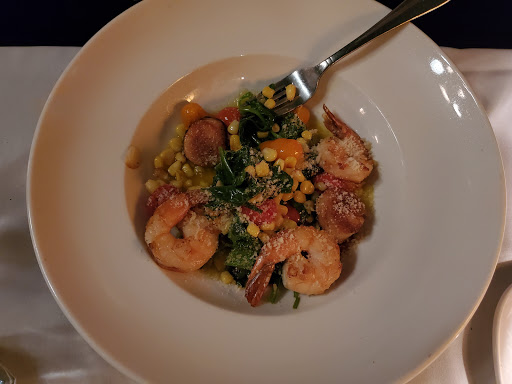 The shrimp was way to large and overcooked. The meal was too bland for my taste. However the hazelnut gelato was Devine. Way to pricey for taste.