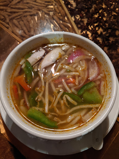 Delicious food and very interesting environment--kind of natural, with assorted foods inside the tables and a bridge over a water fountain by the entrance.
