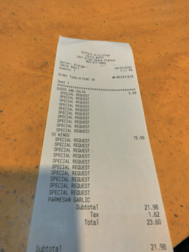 A group of us came to b-dubs after a church service. Our waiter/servers name was Mateo and he was awesome. He was pleasant and friendly. When one of our meals was cold, he did not hesitate to get us a new order of wings. Our food was delicious and even though we closed out the place, they werent rude about us being there to closing. Will definitely be back again. Bonus is we returned all our pens back to him and he was happy about it.