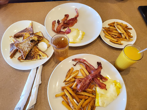 Very good food for a great price. Ive tried almost all of their pancakes and my favorites are the bacon, chocoholics, and cinnabon! Definitely coming here for breakfast is a must! And even the food not on the breakfast menu is delicious. Ive had the turkey club and chicken parm, both were so delicious and very large portions. Unless you are a good eater, prepare for leftovers!! Ive always had pleasant wait staff here, never got the grumpy miserable waitress that clearly hates her job type. I would highly recommend this restaurant for any time of day, all of it is fantastic.