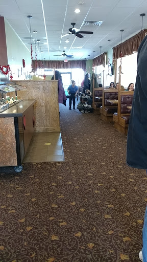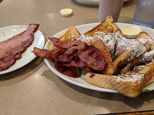 Busy during the morning hours but not a long wait. Decor and atmosphere are a bit dated, but once the food is in front of you, all that is gone. Pancakes were light and fluffy and served pretty quickly for the wait we should have had. Hasbrowns eggs and toast were all served in great porportions. Wait staff was super friendly and kind. Service was fast and efficent and it was an overall great meal. Would definitly try to make the drive to come back in the future! :)