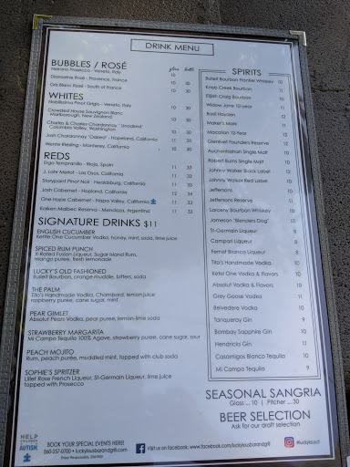 A fabulous cocktail and dining experience every time! Lucas has created the perfect dining atmosphere.... from the octopus salad, to the juicy burgers and steaks, mouth watering specials, and happy hour pricing, Lucky Lous never fails to deliver! A festive neighborhood vibe, outdoor entertainment. Its what this town has needed for years. Cant go wrong here.