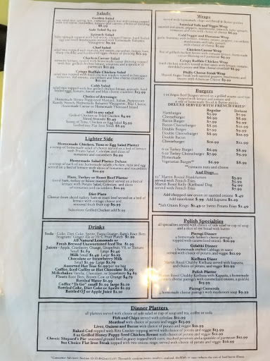 Good food, including some Polish dishes like pierogi and cabbage soup. The Waitresses are friendly and helpful. Prices are reasonable.
