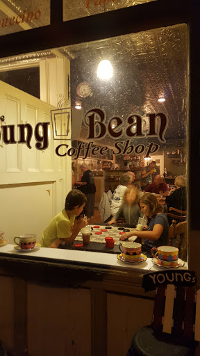 I am new to town and was greeted by friendly smiley faces! The Young Bean has a great cozy atmosphere with some amazing pieces of history inside. Friday afternoon/evenings they will have local musicians playing....sounds like a fantastic work week closer! Coffee was outstanding. Next time I will try some of the baked goods!! Support your local small businesses!!!!